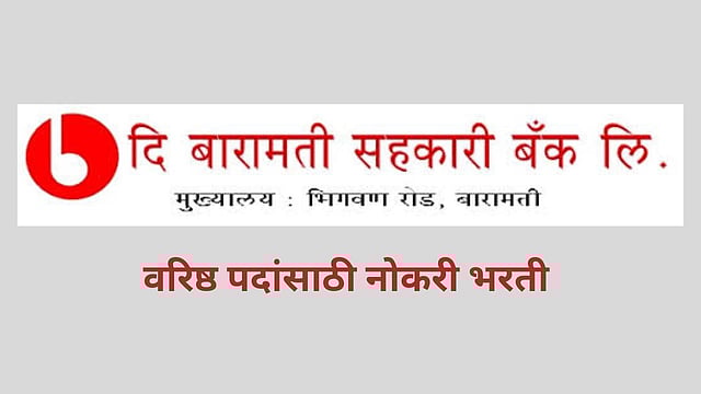 बारामती : पश्चिम महाराष्ट्रातील सहा जिल्ह्यांमध्ये कार्यक्षेत्र असलेल्या आणि सुमारे ₹३,५०० कोटींचा एकूण व्यवसाय असलेल्या दि बारामती सहकारी बँक लिमिटेड मध्ये मुख्यालय स्तरावर विविध वरिष्ठ पदांसाठी कॉन्ट्रॅक्ट पद्धतीने भरती करण्यात येणार आहे. यासाठी पात्र व अनुभवी उमेदवारांकडून ऑनलाईन अर्ज मागविण्यात येत आहेत.