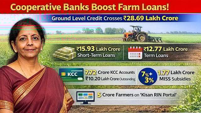 भारतातील कृषी पतपुरवठा व्यवस्थेत सहकारी बँकांची भूमिका अत्यंत महत्त्वाची आहे. आर्थिक सर्वेक्षण २०२५-२६ नुसार, आर्थिक वर्ष २०२५ मध्ये ग्राउंड लेव्हल क्रेडिट (GLC) २८.६९ लाख कोटी रुपयांपर्यंत पोहोचले आहे, जे ठराविक लक्ष्य २७.५ लाख कोटी रुपयांपेक्षा जास्त आहे.