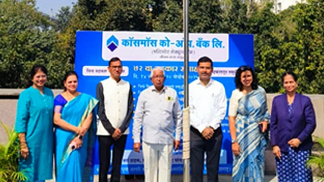 कॉसमॉस को-ऑपरेटिव्ह बँकेत सहकार सप्ताहाला उत्साहपूर्ण सुरुवात झाली. दरवर्षीप्रमाणे या वर्षीही १४ नोव्हेंबर ते २० नोव्हेंबर २०२५ या कालावधीत सहकार सप्ताहाचे आयोजन करण्यात आले आहे. या निमित्ताने बँकेच्या मुख्य कार्यालयात ध्वजारोहण समारंभ पार पडला. बँकेचे अध्यक्ष ॲड. प्रल्हाद कोकरे यांनी ध्वज फडकावून सहकार सप्ताहाचे उद्घाटन केले.