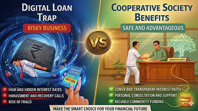 जर कर्ज घ्यायचं असेल तर सहकारी संस्था किंवा पतसंस्थांकडून कर्ज घेणे अनेकदा अधिक सुरक्षित, पारदर्शक आणि कर्जदारासाठी फायदेशीर ठरते. या संस्थांचा मूलभूत उद्देश नफा कमावणे नसून सदस्यांचे आर्थिक सक्षमीकरण करणे हा असतो. त्यामुळे व्याजदर तुलनेने कमी, अटी-शर्ती स्पष्ट आणि परतफेडीची रचना लवचिक असते. स्थानिक पातळीवर कार्यरत असल्याने कर्जदाराची आर्थिक परिस्थिती समजून घेतली जाते आणि गरजेनुसार सल्लाही दिला जातो. शिवाय, सहकारी संस्थांमध्ये वैयक्तिक संवाद आणि विश्वासाला अधिक महत्त्व दिले जाते, ज्यामुळे कर्ज प्रक्रियेत पारदर्शकता राहते आणि फसवणुकीचा धोका कमी होतो. डिजिटल लोन अँप्सच्या तुलनेत येथे लपविलेले शुल्क किंवा अनपेक्षित दंडात्मक अटी कमी प्रमाणात आढळतात. त्यामुळे योग्य नोंदणीकृत आणि विश्वासार्ह सहकारी संस्थेकडून घेतलेले कर्ज हे दीर्घकालीन दृष्टीने आर्थिकदृष्ट्या अधिक फायदेशीर आणि सुरक्षित पर्याय मानला जातो.