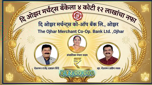 ओझर: निफाड तालुक्याची प्रमुख अर्थवाहिनी असलेल्या 'दि ओझर मर्चंट्स को-ऑप बँकेने' कठीण आर्थिक परिस्थितीतही आपली प्रगतीची घौडदौड कायम राखली आहे. आर्थिक वर्ष २०२५-२६ मध्ये बँकेला ४ कोटी १२ लाख रुपयांचा ढोबळ नफा झाला असून, सर्व तरतुदी वजा जाता ९१ लाख २७ हजार रुपयांचा निव्वळ नफा प्राप्त झाला आहे, अशी माहिती बँकेचे चेअरमन राजेंद्र दत्तात्रय शिंदे यांनी दिली आहे.