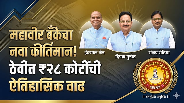 सोलापूर: सहकारी बँकिंग क्षेत्रात आपल्या पारदर्शक आणि विश्वासार्ह कारभाराने स्वतंत्र ओळख निर्माण करणाऱ्या सोलापुरातील अग्रगण्य श्री महावीर अर्बन को-ऑप. बँक लि. ने आर्थिक वर्ष २०२५-२६ मध्ये दैदिप्यमान यश संपादन केले आहे. ३१ मार्च २०२६ अखेर संपलेल्या आर्थिक वर्षात बँकेच्या एकूण ठेवींमध्ये २८ कोटी रुपयांची भरीव वाढ झाली असून, बँकेने डिजिटल बँकिंग क्षेत्रात तब्बल ५०० कोटींच्या व्यवहारांचा टप्पा पार करून एक नवा उच्चांक प्रस्थापित केला आहे.