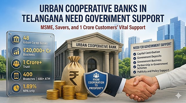 The total NPA of urban cooperative banks in Telangana is Rs 162 crore, which is only 1.89%, and is lower than the average of the banking sector in the country. Urban Cooperative Banks (UCBs) in Telangana are playing a vital role in providing credit to Micro, Small and Medium Enterprises (MSMEs) in the state. With local and member-centric banking, these banks have built a strong foundation of savings, credit and cooperation.
