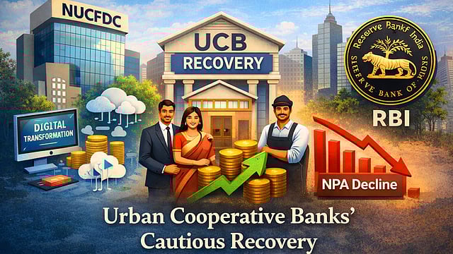 भारताच्या शहरी सहकारी बँका (UCBs) काही वर्षांच्या संकटानंतर हळूहळू पुनरुज्जीवनाच्या मार्गावर आहेत. मार्च २०२१ मध्ये एकूण बुडीत कर्जे ₹36,459 कोटी होती, तर मार्च २०२५ पर्यंत ती ₹23,072 कोटीपर्यंत कमी झाली आहेत. RBI च्या आकडेवारीनुसार, जीएनपीए सप्टेंबर २०२१ मध्ये १५.४% वरून सप्टेंबर २०२५ मध्ये ७.६% वर आला, तर एनएनपीए ८.७% वरून फक्त २.५% झाला.