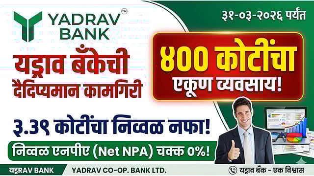 जयसिंगपूर: सहकारी बँकिंग क्षेत्रात आपल्या विश्वासार्हतेचा ठसा उमटवणाऱ्या यड्राव को-ऑपरेटिव्ह बँक लि; यड्रावने ३१ मार्च २०२६ अखेर संपलेल्या आर्थिक वर्षात नेत्रदीपक कामगिरी नोंदवली आहे. बँकेने ४०० कोटी रुपयांच्या एकूण व्यवसायाचा (Business Mix) टप्पा यशस्वीपणे पार केला असून, अत्यंत शिस्तबद्ध नियोजनामुळे बँकेचा निव्वळ एनपीए (Net NPA) शून्य टक्क्यांवर राखण्यात यश आले आहे.
