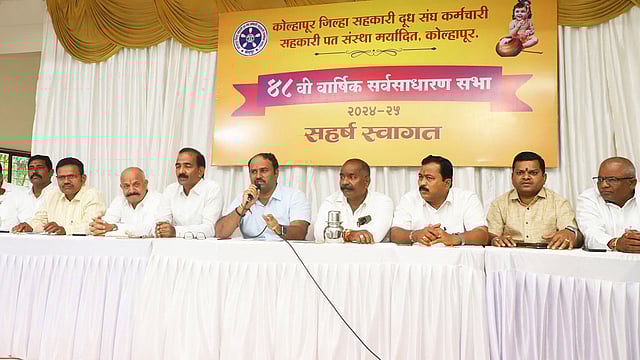कोल्हापूर: येथील गोकुळ संलग्न कोल्हापूर जिल्हा सहकारी दूध संघ कर्मचारी सहकारी पतसंस्थेची वार्षिक सर्वसाधारण सभा जिल्हा परिषदेच्या महालक्ष्मी सांस्कृतिक भवन, शाहूपुरी येथे खेळीमेळीच्या वातावरणात पार पडली. या वेळी संस्थेचे अध्यक्ष सचिन पाटील यांनी सभासदांना ८ टक्के लाभांश देणार असल्याचे जाहीर केले.
