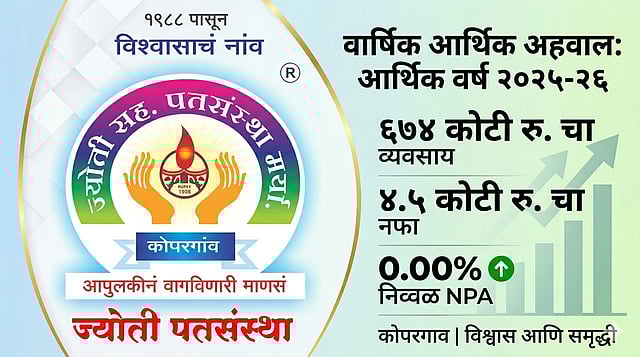 कोपरगाव: सहकार क्षेत्रात आपल्या चोख व्यवहारामुळे स्वतंत्र ओळख निर्माण करणाऱ्या ज्योती सहकारी पतसंस्थेने २०२५-२६ या आर्थिक वर्षात उल्लेखनीय प्रगती केली आहे. मार्च २०२६ अखेर संस्थेचा एकूण एकत्रित व्यवसाय ६७४ कोटी रुपयांवर पोहोचला असून, संस्थेने ४ कोटी ५० लाख रुपयांचा निव्वळ नफा कमावला आहे. संस्थेचे चेअरमन अॅड. श्री. रविकाका बोरावके यांनी या यशाची अधिकृत माहिती प्रसिद्धीस दिली आहे.