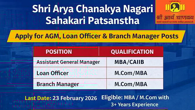 इचलकरंजी – शहरासह कोल्हापूर, सांगली आणि सातारा जिल्हा कार्यक्षेत्र असलेल्या श्री आर्य चाणक्य नागरी सहकारी पतसंस्था मर्यादित, इचलकरंजी यांनी विविध पदांसाठी भरती जाहीर केली आहे. पात्र आणि अनुभवी उमेदवारांकडून अर्ज मागविण्यात आले आहेत.