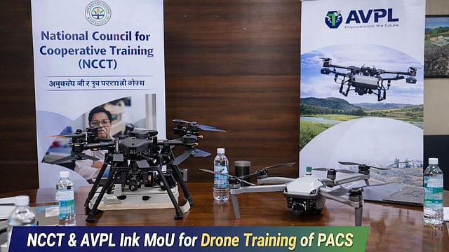भारताच्या ग्रामीण सहकारी व्यवस्थेला बळकटी देण्यासाठी महत्त्वाचे पाऊल उचलण्यात आले आहे. National Council for Cooperative Training (NCCT) आणि AVPL International यांच्यात देशभरातील सहकारी सदस्यांसाठी संरचित ड्रोन प्रशिक्षण कार्यक्रम राबवण्यासाठी सामंजस्य करार (MoU) करण्यात आला आहे.