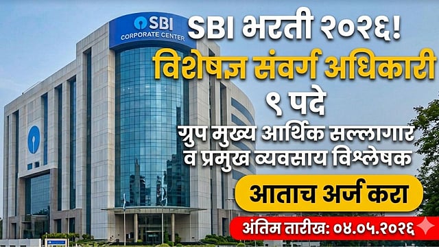 मुंबई: बँकिंग क्षेत्रातील दिग्गज असलेल्या भारतीय स्टेट बँकेने (SBI) विशेषज्ञ संवर्ग अधिकारी (SCO) पदांच्या भरतीसाठी अधिकृत जाहिरात प्रसिद्ध केली आहे. या भरती प्रक्रियेद्वारे कंत्राटी तत्त्वावर विविध वरिष्ठ पदांसाठी अर्ज मागवण्यात येत आहेत. पात्र भारतीय नागरिकांना बँकेच्या अधिकृत संकेतस्थळावर ऑनलाईन अर्ज करता येईल.